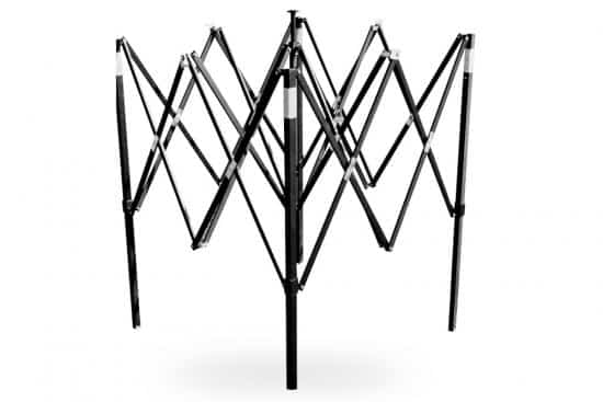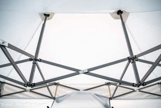For at sikre teltets levetid er rammen fremstillet i stål med firkantede profiler og forstærkninger. Trods den robuste konstruktion er teltet stadig let at transportere.